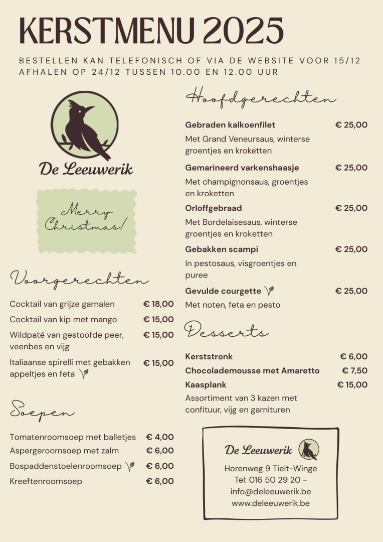 Bestellen kan telefonisch op 016 50 29 20 of per e-mail info@deleeuwerik.be